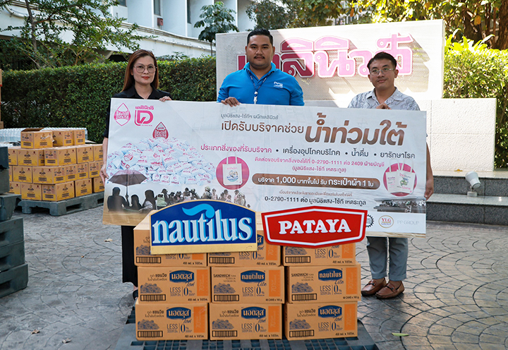 กลุ่มบริษัทพัทยาฟู้ด เล็งเห็นถึงปัญหาจาก มหาอุทกภัย ที่เกิดขึ้นในภาคใต้ โดย บริษัท นอติลุสฟู้ด (ประเทศไทย) จำกัด มอบ ทูน่าแซนด์วิชในน้ำมัน ตรา นอติลุสไลท์ ให้แก่ มูลนิธิแสง-ไซ้กี เหตระกูล